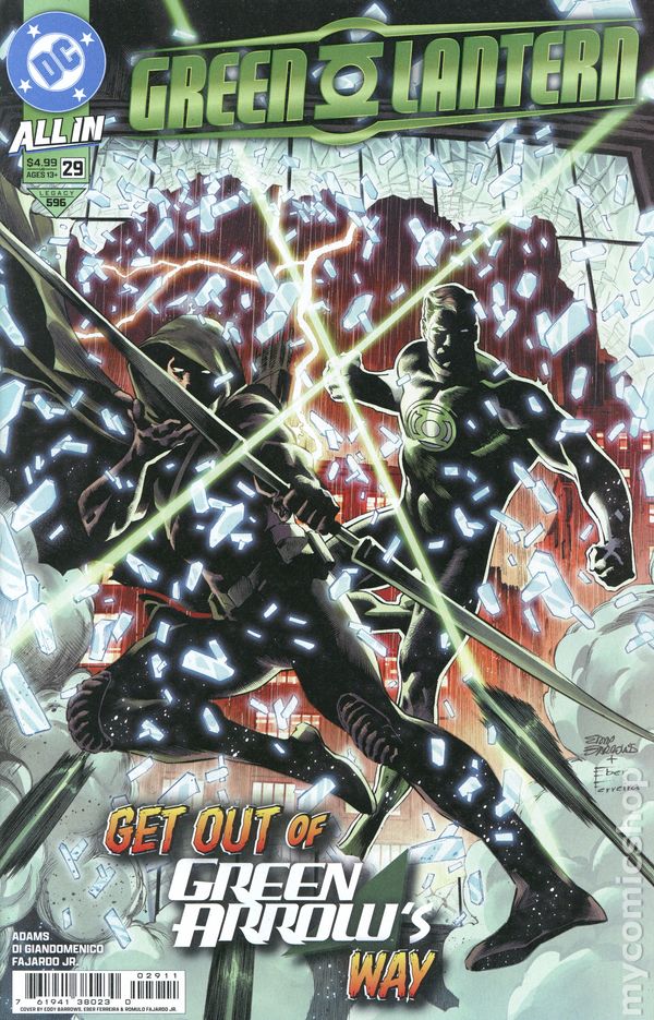 (W) Jeremy Adams (A) Carmine Di Giandomenico (CA) Eddy Barrows, Eber Ferreira HAL JORDAN AND GREEN ARROW UP AGAINST A COSMIC MYSTERY! Hal Jordan is off to Star City to check on his good friend Oliver Queen when things go sideways and the boys find themselves with a bit of a problem that can only lead to some serious hard travellin' solutions! 32 pages, full color, rated 13+. Cover price $4.99.