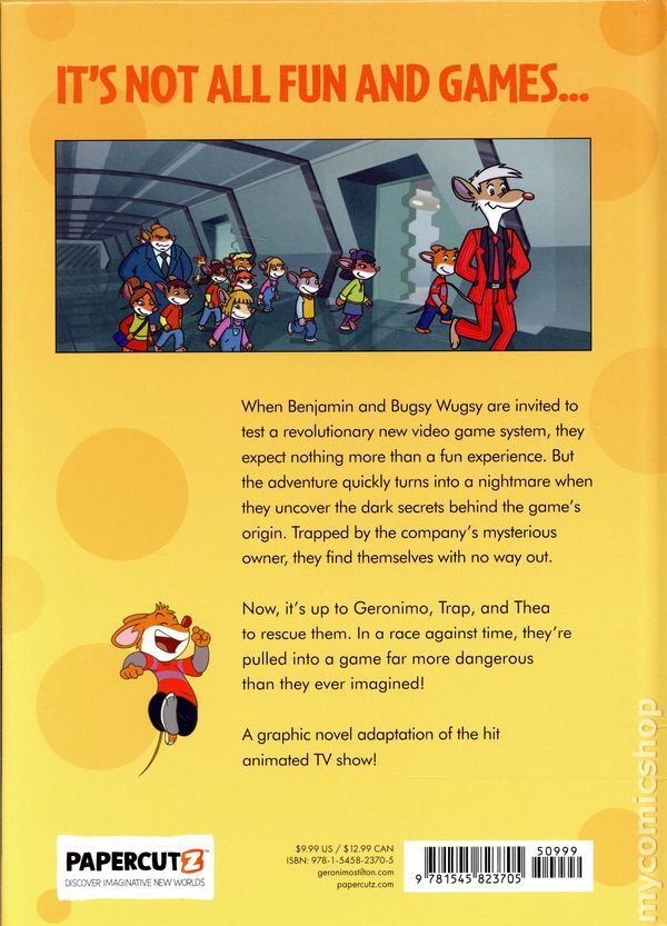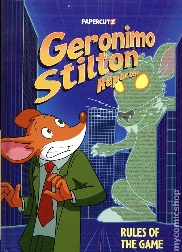 Volume 21 - 1st printing. "Rules of the Game!" Written by Geronimo Stilton (and Davide Costa). Art and cover by Alessandro Muscillo. Continuing the adventures of Geronimo Stilton and his team as they report on unusual mysteries and try to help those in need. Adventure, mystery and humor abound! When Benjamin and Bugsy Wugsy are invited to test a revolutionary new video game system, they expect nothing more than a fun experience. But the adventure quickly turns into a nightmare when they uncover the dark secrets behind the game's origin. Trapped by the company's mysterious owner, they find themselves with no way out. Now, it's up to Geronimo, Trap, and Thea to rescue them. In a race against time, theyre pulled into a game far more dangerous than they ever imagined! Hardcover, 7-in. x 9-in., 56 pages, full color. Cover price $9.99.