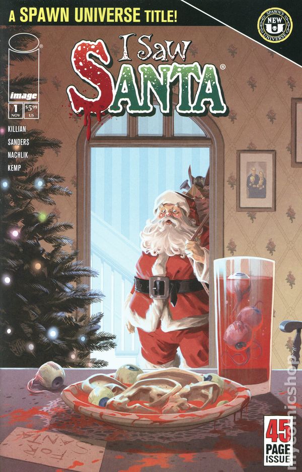 (W) Chris Killian, Andrew Sanders (A) Thomas Nachlik (CA) Todor Hristov Santa gives presents to the good kids and a stocking full of coal to the bad ones. But what happens when one disturbed child takes offense to Santas gift of coal, and makes it his lifes mission to torment Jolly Ol Saint Nick for the rest of his life? Sam and Twitch discover the bodies, but only Spawn can put an end to it. 48 pages, full color, not rated. Cover price $5.99.