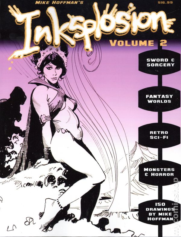 Volume 2 - 1st printing. Hoffman International presents: Inksplosion volume 2. 150 outstanding Ink Artworks by Mike Hoffman, featuring subjects like Sword & Sorcery, Fantasy, Retro Science Fiction, Monsters, Horror and more! Softcover, 8 1/2-in. x 11-in., 152 pages, B&W. Mature Readers Cover price $16.99.