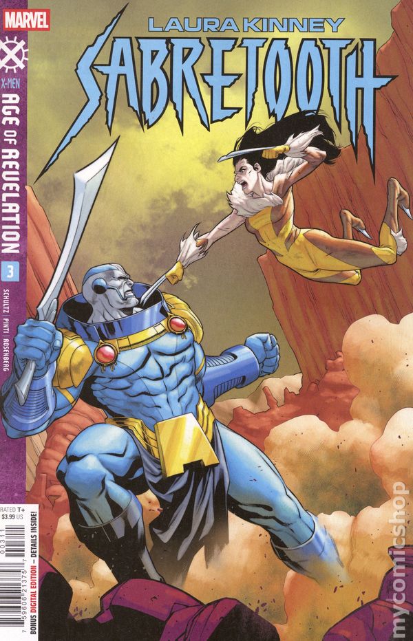 (W) Erica Schultz (A) Valentina Pinti (CA) David Lopez RAID ON ARAKKO! X YEARS LATER, SABRETOOTH stalks ARAKKO, home of APOCALYPSE! Don't miss this key turning point in REVELATION's plan, as LAURA must choose between family and fealty…with deadly results. 32 pages, full color, rated T+. Cover price $3.99.
