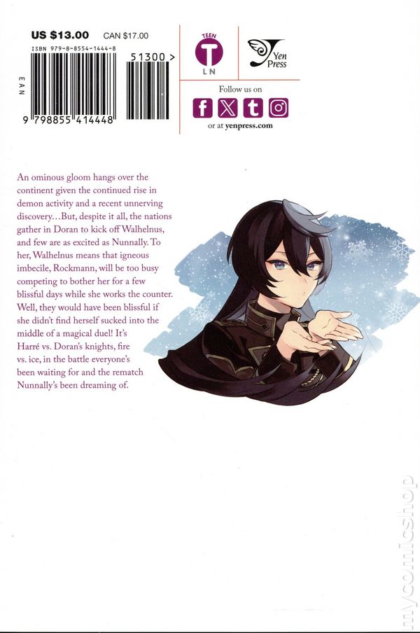 Volume 7 - 1st printing. Written by MAKO. Art and cover by Yone. Character Design by Maro. Translated by Jan Cash. After putting all her blood, sweat, and tears into her work, cutting costs, and yet more overtime, Alina has finally budgeted enough for the staff of Iffole Counter to take a two-day trip to a resort! After finishing her first fantastic day off, she dives into bed full of satisfaction... only to wake up back at the beginning of day one. Now she's stuck in an endless loop, unable to go home. Someone has ruined her precious vacation, and when she finds them, they're going to get a taste of her hammer. Softcover, 5-in. x 7-in., 170 pages, B&W. Teen Cover price $13.00.