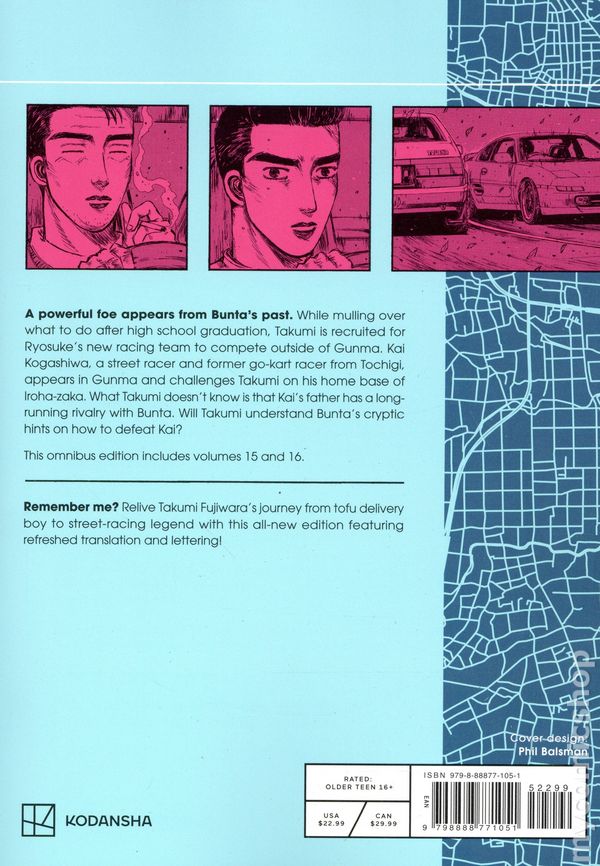 Volume 8 - 1st printing. Collects Initial D GN (2002-2008 Tokyopop) Vol. 15-16. Story and art by Shuichi Shigeno. Translated by Kevin Steinbach. Remember me? Relive Takumi Fujiwara's journey from tofu delivery boy to street-racing legend in an all-new, large-sized, 2-in-1 print edition of the series that made Japanese street racing into a worldwide phenomenon. Contains a new translation of Initial D Vol. 15-16. Takumi Fujiwara spends a lot of time behind the wheel. His tofu delivery job sends him racing down the treacherous roads of Mount Akina, and without even realizing it, Takumi has mastered racing techniques that take most drivers a lifetime to learn. Of course, none of his friends realize this. They're all too busy watching the Akina Speed Stars, the local street racing team. When the legendary Red Suns show up to challenge the Speed Stars, the rival team obsesses over a phantom car, the Trueno Eight-Six, seen racing through the mountain roads. Who is the driver, and will they take on the dangerous challenge? This edition is still running in the '90s but features a refreshed translation and lettering for the 2020s, as well as a special large size. Softcover, 6-in. x 8-in., 448 pages, B&W. Cover price $22.99.