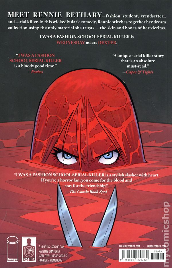 1st printing. Collects I Was a Fashion School Serial Killer (2025 Image) #1-5. Written by Doug Wagner. Art and cover by Daniel Hillyard. Sewing together serial killer horror and college drama feels so right—like slipping into a warm blood bath. Rennie Bethary has just been accepted into New York Citys most prestigious fashion school. Her designs are daring, edgy, and singular…and made of human flesh. Did we forget to mention Rennie is a serial killer who simply wants to be a fashion designer instead? Stupid, pesky, murderous urges! Softcover, 144 pages, full color. Mature Readers Cover price $19.99.