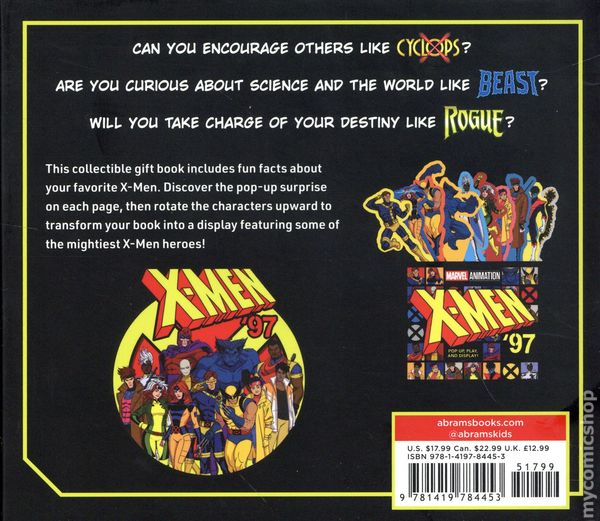 1st printing. Your favorite nineties mutants jump into action in this interactive gift book that transforms into a scene for display—based on Marvel Animation's hit show X-Men 97 on Disney+!This fun, interactive book features popular X-Men 97 characters from the hit Marvel Animation's Disney+ TV show! Each spread includes a simple message, fun facts, and a favorite hero that readers can move and fold up. Remove the jacket and pop up the characters to bring each dynamic scene to life, then display the ultimate Super Hero mutant team! Innovative, imaginative, and boldly designed, this is the perfect gift for Marvel fans of all ages. Hardcover, 6-in. x 5 1/2-in., 24 pages, full color. Cover price $17.99.