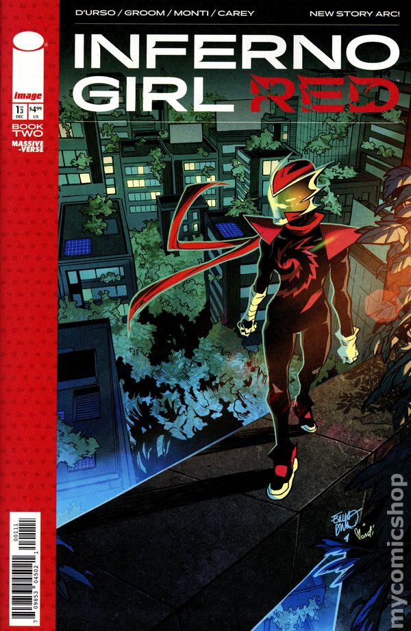 (W) Mat Groom (A) ERICA D URSO (CA) Daniel Bayliss INFERNO GIRL RED RETURNS! Cássia Costa has established herself as Apex Citys protector—but now, still reeling from a heartbreaking loss, the consequences of her past victories have come back to haunt her. Who are the Twins, what are their plans for Apex, and what shocking revelation will leave Cássia reeling?Co-creators ERICA DURSO (Immortal Legend Batman) and MAT GROOM (Spider-Verse vs Venomverse) return to deliver blistering action and teen drama in the first of three 40-page issues! 48 pages, full color, rated teen Cover price $4.99.