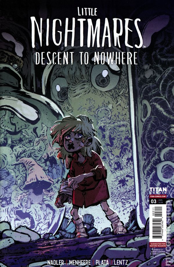 (W) Lonnie Nadler (A) Dennis Menheere, Dearbhla Kelly (CA) Jorge Corona BASED ON THE BEST-SELLING CHARMING HORROR GAME, LITTLE NIGHTMARES! The investigation into the MISSING CHILDREN of the Counties hits another roadblock when the CHIEF OF POLICE takes Officer Guys badge. Despite no obvious leads Myra knows that the answers are just within reach, if only she can push DEEPER into the darkness of the Counties, and seek COUNSEL from someone who knows the children better than most. In the DUNGEON, Hush discovers the disturbing truth of why the JAILER is so determined to keep the children wrapped within her chains, and the disturbing ends shell go to retain her power. 32 pages, full color, rated mature. Cover price $4.99.