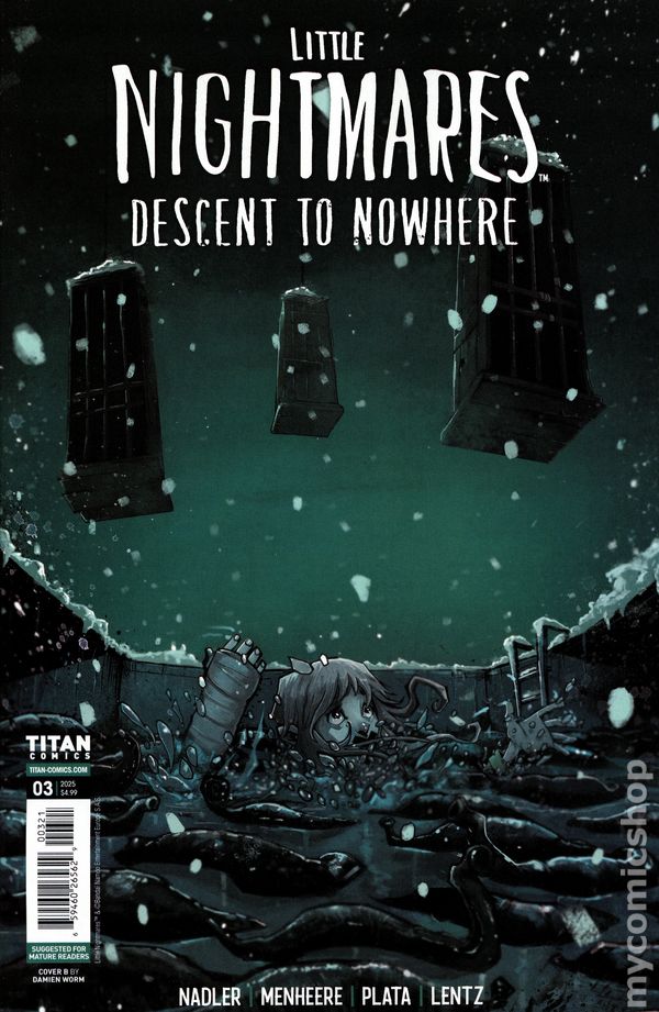 (W) Lonnie Nadler (A) Dennis Menheere, Dearbhla Kelly (CA) Damien Worm BASED ON THE BEST-SELLING CHARMING HORROR GAME, LITTLE NIGHTMARES! The investigation into the MISSING CHILDREN of the Counties hits another roadblock when the CHIEF OF POLICE takes Officer Guys badge. Despite no obvious leads Myra knows that the answers are just within reach, if only she can push DEEPER into the darkness of the Counties, and seek COUNSEL from someone who knows the children better than most. In the DUNGEON, Hush discovers the disturbing truth of why the JAILER is so determined to keep the children wrapped within her chains, and the disturbing ends shell go to retain her power. 32 pages, full color, rated mature. Cover price $4.99.
