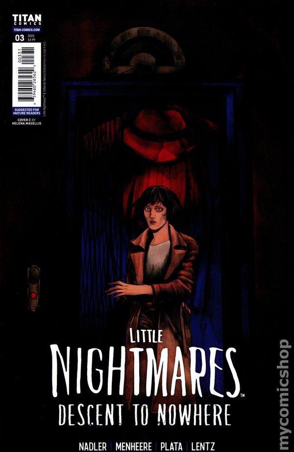 (W) Lonnie Nadler (A) Dennis Menheere, Dearbhla Kelly (CA) Helena Masellis BASED ON THE BEST-SELLING CHARMING HORROR GAME, LITTLE NIGHTMARES! The investigation into the MISSING CHILDREN of the Counties hits another roadblock when the CHIEF OF POLICE takes Officer Guys badge. Despite no obvious leads Myra knows that the answers are just within reach, if only she can push DEEPER into the darkness of the Counties, and seek COUNSEL from someone who knows the children better than most. In the DUNGEON, Hush discovers the disturbing truth of why the JAILER is so determined to keep the children wrapped within her chains, and the disturbing ends shell go to retain her power. 32 pages, full color, rated mature. Cover price $4.99.