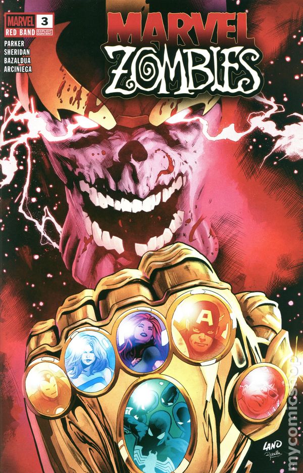 (W) Ethan S. Parker; Griffin Sheridan (A) Jan Bazaldua (CA) Greg Land THANOS SNAPS! The undead history of the Marvel Universe continues on as Thanos takes on the quest for the Infinity Stones! The Mad Titan of our universe once killed half of all life. What will he do in a universe where the dead don't die?! 32 pages, full color, rated explicit content. Cover price $4.99.