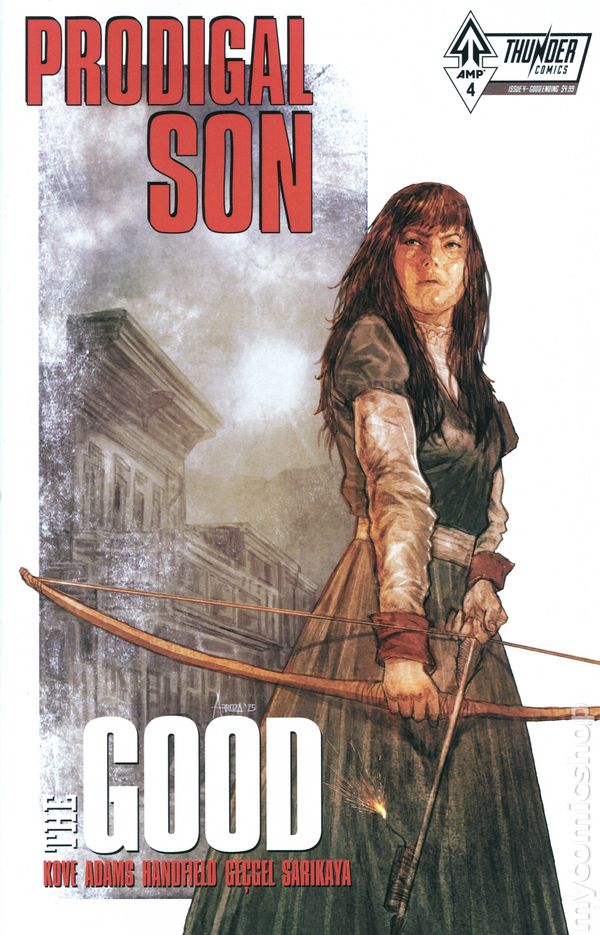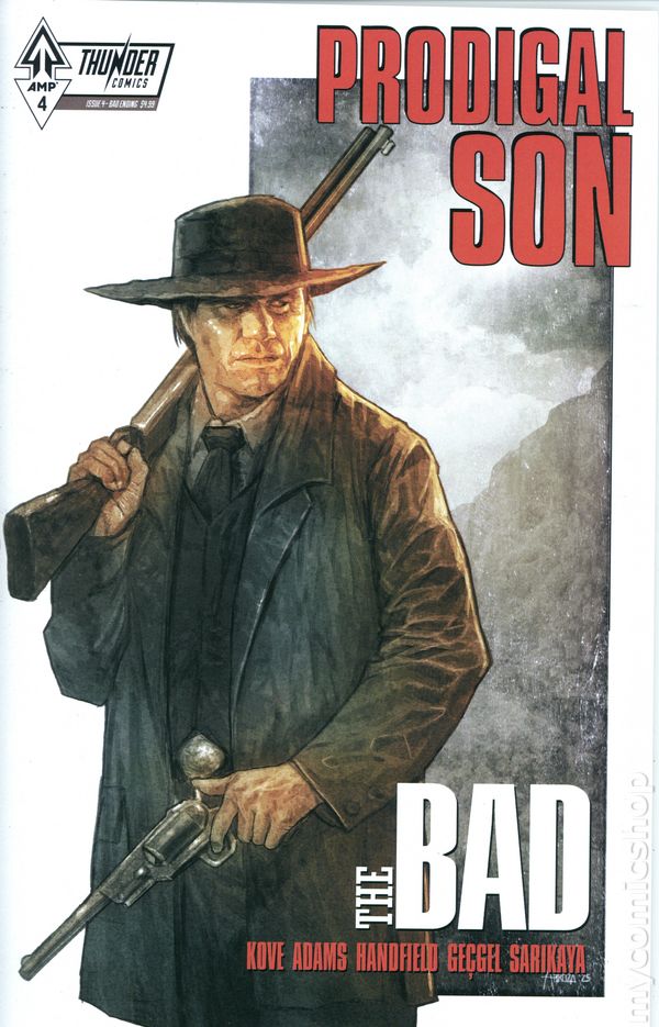 2nd Printing. (W) Martin Kove, Clay Adams, Don Handfield (A) Alpert Gecgel (CA) Erwin J Arroza AMP Comics Presents: Prodigal Son #4. The final chapter of Prodigal Son is unlike any other comic event! This issue comes with three distinct endings, each one offering a unique conclusion to the series' gripping storyline. Fans will have the option to pick their favorite resolution or collect all three variant covers to experience every possibility. Each cover reflects one of the three endings, ensuring that no matter which one you choose, its a must-have for your collection. As the series concludes, the fate of the Man in Black and his allies will hang in the balance, with twists and turns that will leave you questioning everything. Choose your ending—collect them all—don't miss the thrilling conclusion of Prodigal Son! The Good version, back for a second printing! 32 pages, full color, not rated. Cover price $4.99.