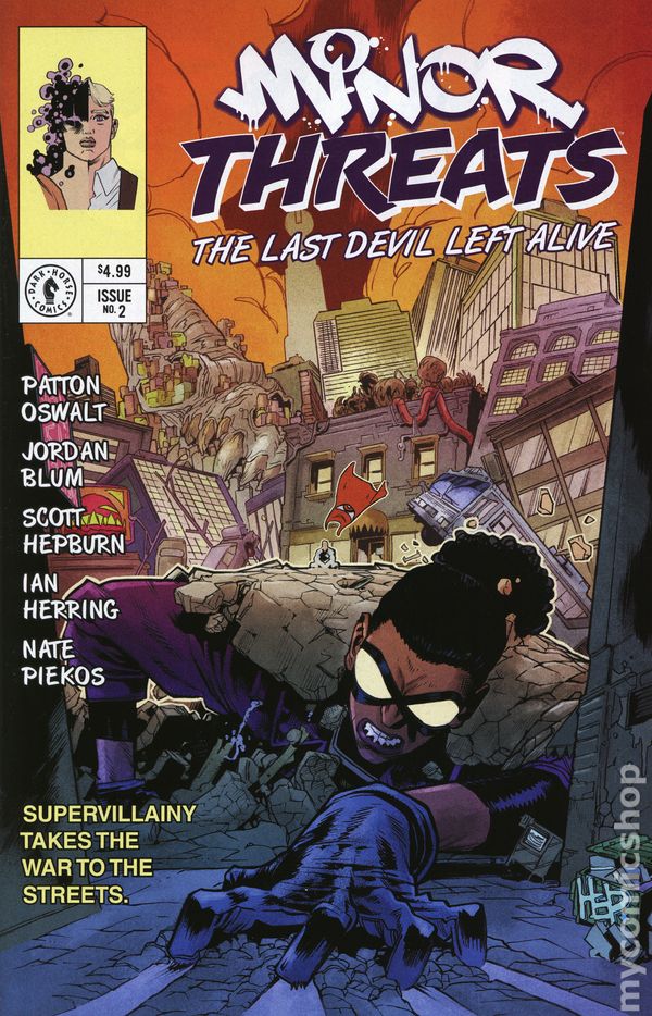 (W) Patton Oswalt; Jordan Blum (A) Scott Hepburn (CA) Scott Hepburn (C) Ian Herring The hit superhero saga that’s Watchmen meets The Wire returns from Patton Oswalt and Jordan Blum, showrunners of Marvel’s M.O.D.O.K on HULU, and superstar artist Scott Hepburn (Tom Morello’s Orchid).The Minor Threats have gone underground, standing on their last leg as they fight for the future of Twilight City. Frankie Follis aka the supervillain Playtime desperately needs a leader for her new ragtag team of rejects and sets her sights on recruiting the greatest superhero of all—The Searcher! After traveling to Meteor Falls she instead finds a recently depowered shell of the former champion of justice. The Searcher: no more. On top of that Frankie, Scalpel and the others are attacked by an all-new, all-deadly version of The Action. And if that wasn't enough, the team-up no one asked for—Brain Tease and Barfly pull a heist! And folks, it doesn't go well . . .• Five-issue series. 32 pages, full color, not rated. Cover price $4.99.