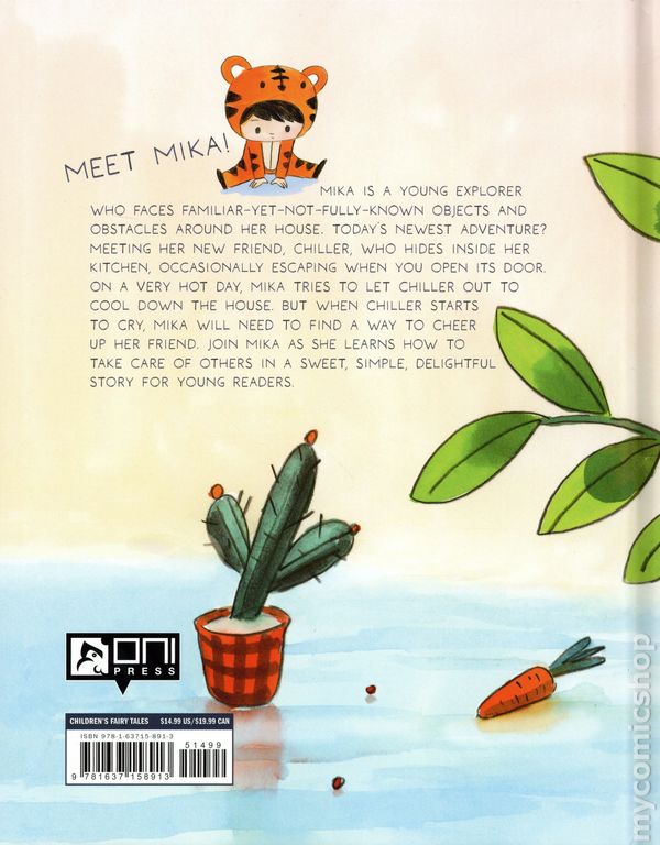 1st printing. Written by Agata Loth-Ignaciuk. Art and cover by Berenika Kolomycka. From award-winning creators Agata Loth-Ignaciuk & Berenika Kolomycka (Mika and the Gurgler and Mika and the Howler), join Mika as she learns how to take care of others in a sweet, simple, delightful story for young readers. Meet Mika! Mika is a young explorer who faces familiar-yet-not-fully-known objects and obstacles around her house. Todays newest adventure? Meeting her new friend, Chiller, who hides inside her kitchen, occasionally escaping when you open its door. On a very hot day, Mika tries to let Chiller out to cool down the house. But when Chiller starts to cry, Mika will need to find a way to cheer up her friend. Hardcover, 7-in. x 9-in., 32 pages, full color. Cover price $14.99.
