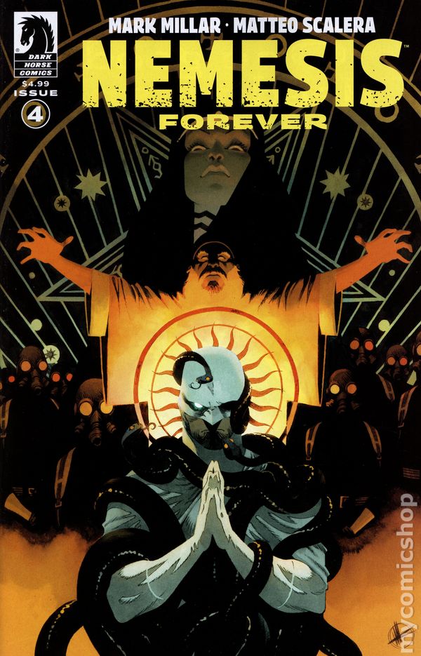(W) Mark Millar (A) Matteo Scalera (CA) Matteo Scalera (C) Giovanna Niro Nemesis has been captured by the German authorities and the high priests in his Satanic sect tell him that his destiny is to die in what will be his final mission, unless he makes a deal with their master and rules this world forever. Can he TRUST them?• Five-issue series. 32 pages, full color, not rated. Cover price $4.99.