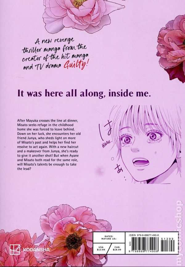 Volume 3 - 1st printing. Story and art by Ai Okaue. Translated by Sawa Matsueda Savage. A new revenge thriller manga from the creator of the hit manga and TV drama Guilty! Plunge into a tale of vengeance set in the dark depths of showbiz, where a rise to stardom casts sinister shadows. Another gut-wrenching thriller perfect for fans of streaming hits The Glory and Burn Down the House. It was here all along, inside me. After Mayuka crosses the line at dinner, Misato seeks refuge in the childhood home she was forced to leave behind. Down on her luck, she encounters her old friend Junya, who sheds light on more of Misato's past and helps her find her resolve to act again. With a new haircut and a makeover from Junya, shes ready to give it another shot! But when Ayane and Misato both read for the same role, will Misato's talents be enough to take the lead? Softcover, 5-in. x 7-in., 176 pages, full color. Mature Readers Cover price $13.99.