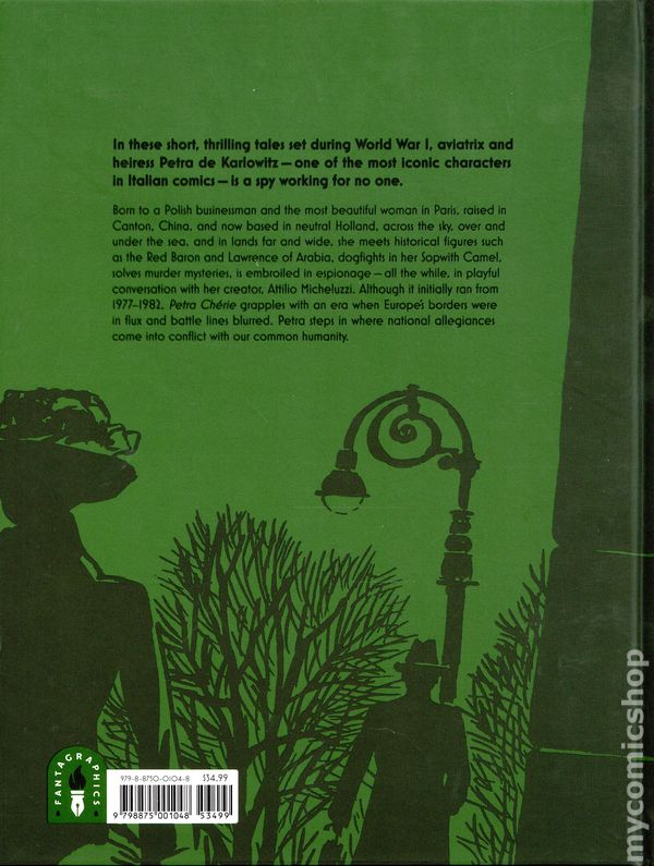 1st printing. Story and art by Attilio Micheluzzi. Set during World War I and originally published in serial format from 1977–1982, Petra Chérie follows the adventures of Petra De Karlowitz, Chérie to creator Attilio Micheluzzi, who addresses her throughout the book. Born to a Polish businessman and the most beautiful woman in Paris, raised in Canton, China, and now based in neutral Holland, she is a spy who answers only to herself. Evoking but cleverly eschewing stereotypes of the femme fatale, Petra is equally at home in the cockpit of an airplane and behind the wheel of a motorcar. More than that, she is an endlessly fascinating enigma and one of the most iconic characters in Italian comics. In short, thrilling tales across sky, sea, and land, zipping from Northern Europe to Mitteleuropa, from the Balkans to the Bosphorus to the nascent Soviet Union, Micheluzzi grapples with an era when Europes borders were in flux and battle lines were often blurred. Petra steps in where national allegiances come into conflict with our common humanity. Attilio Micheluzzi, an architect by training who grew up between Istria, Libya, and Naples, brings his international experiences and his keen sense of perspective to his work. In the tradition of the Corto Maltese adventures and stylish look of Guido Crepaxs Valentina, Petra Chérie is the touchstone book in Fantagraphics comprehensive Micheluzzi library, prepared in collaboration with the authors daughter Agnese Micheluzzi. Hardcover, 8-in. x 12-in., 312 pages, B&W. Mature Readers Cover price $34.99.