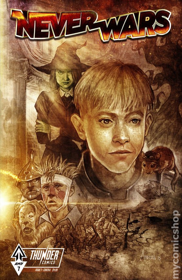 (W) Don Handfield, Tim Zajaros, & Chris Lemole (A) Marcelo Basile (CA) Erwin J Arroza The final battle has begun! As the armies of Oz, Wonderland, Neverland, and Fairyland clash in an epic confrontation, Georgie faces his corrupted grandmother Alice in giant-sized combat above the burning Emerald City. Peter Pan soars through the skies once more, leading a desperate rescue mission, while Dorothy struggles against the Jabberwock's evil influence threatening to consume her soul.With the vorpal blade lost and the beast growing stronger from every act of violence, our heroes must find another way to defeat the Jabberwock—or watch as the NeverWorld tears itself apart. In this penultimate issue, the true cost of war becomes clear as unlikely alliances form and shocking sacrifices are made. 32 pages, full color, not rated. Cover price $4.99.