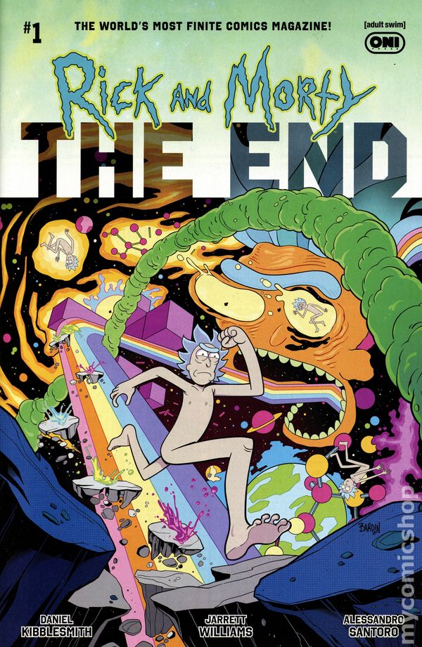 Limited 1 for 10 Retailer Incentive Variant Cover.(W) Daniel Kibblesmith (A) Jarrett Williams (CA) Various OUT OF THE SMOKING RUINS OF RICK AND MORTY VS. THE UNIVERSE (ON SALE NOW!!!)—AN ALL-NEW, MEGA-IMPORTANT MILESTONE FOR THE OMNIVERSES MOST DYSFUNCTIONAL PAIR OF SCIENCE ADVENTURERS STARTS NOW! Rick Sanchez, the most wanted man in this and every other universe, is on the run. With a bounty on his head, every government, military, pirate, mobster, bounty hunter, bail bondsman, religious institution, theater troupe, circus clown, and endangered species is on the hunt to bring in Rick—DEAD OR ALIVE. The only one who can bring Rick in warm is the one person who knows him best: Morty Smith. But Mortys not the only Smith hot on Ricks trail . . . Beth Smith is determined to bring Rick in, and she doesnt particularly care how. Now its just a question of who can get to him first! Cosmic annihilators Daniel Kibblesmith (Loki) and Jarrett Williams (Speed Force) continue their epic re-evolution of Rick and Morty in a brand-new limited series with epic repercussions for whats coming next! 32 pages, full color, rated mature. Cover price $4.99.
