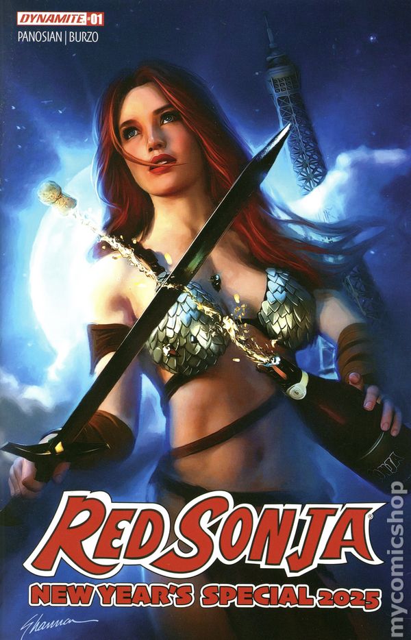 Limited 1 for 15 Retailer Incentive Variant Cover. (W) Dan Panosian (A) Valeria Burzo (CA) Shannon Maer THERES A BAD MOON RISING! When Sonja is summoned to a mountain village under the ominous glow of the Red Moon, she finds herself caught in a web of deception, sacrifice, and monstrous foes. Facing betrayal together with impossible odds, the She-Devil must rely on her cunning and ferocity to turn predator against predator in a brutal fight for survival. Auld acquaintances DAN PANOSIAN and VALERIA BURZO raise a toast to the Hyborian Age that will never be forgot in this 40-page one-shot special — featuring celebratory covers from JOSEPH MICHAEL LINSNER, SHANNON MAER, and cosplay by ANI-MIA! 36 pages, rated Teen, full color Cover price $5.99.