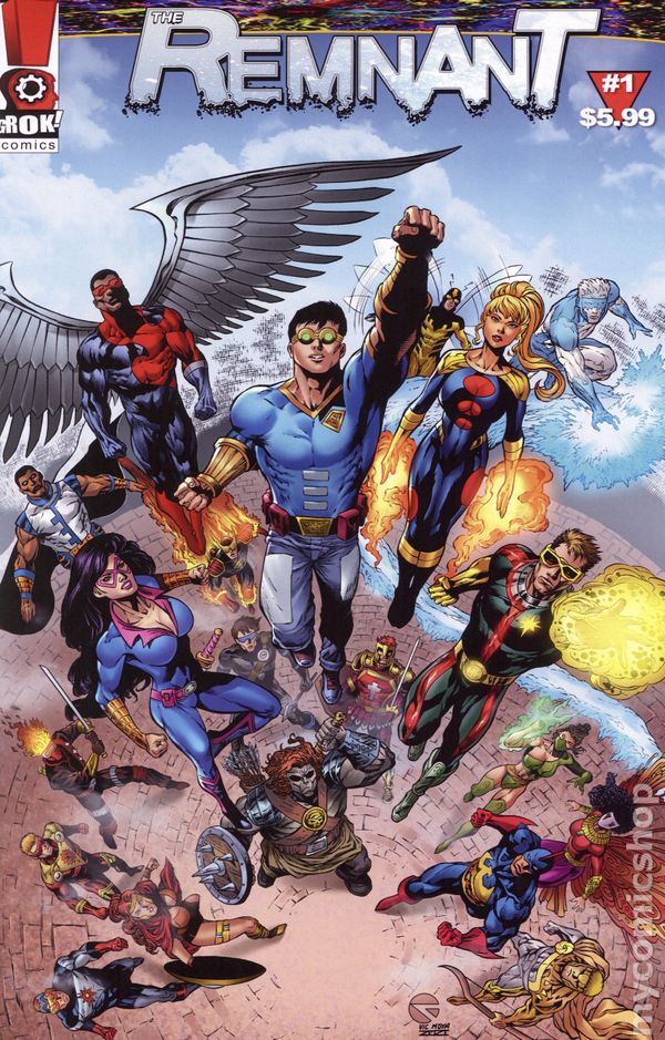 Written by Bill Raupp. Art by Geraldo Araujo. Introducing The Remnant. In our first story, Prelude, Grok, leader of The Remnant, takes us through a brief tour of The Remnant Universe. In our main story Dead Heat: There is a cataclysmic battle between Raytheon and Blue Flame over Cylar City, which has important ramifications on the Remnant universe! Cover price $5.99.