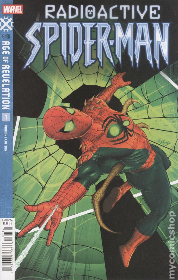 Limited 1 for 25 Retailer Incentive Variant Cover. (W) Joe Kelly (A) Kev Walker (CA) Doaly UNFRIENDLY AND UNSTABLE! X YEARS LATER, the X-Virus decimated New York - but Spider-Man won't stop fighting. In a desperate gamble, Peter Parker doses himself with lethal radiation to hold the infection at bay. Survival comes at a cost. While this may not kill Peter Parker, it sure messes him up. This is the most dangerous, mutated Spider-Man ever - and he's not alone. Cover price $3.99.