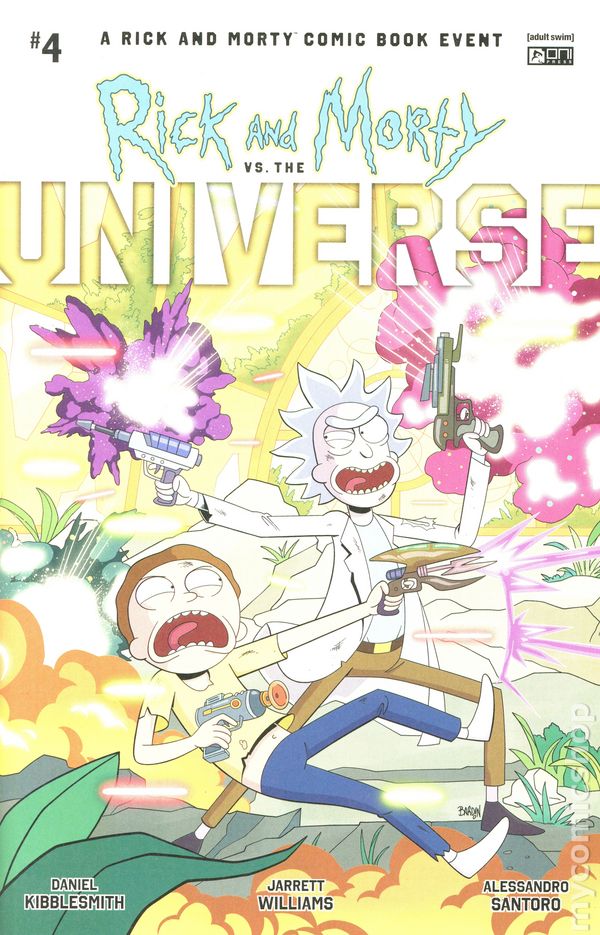 (W) Daniel Kibblesmith (A) Jarrett Williams, (CA) Dave Bardin DEATH, RETCON, REBOOT, REBIRTH . . . IS THIS FINALLY THE END OF RICK AND MORTY?!Theyve finally burned every bridge and alienated every possible ally. Theyve seen too much. Theyve DONE too much. This version of Rick has crossed too many lines. He cant be allowed to continue. At least, thats what the Parmesan Universe seems to think! And perhaps she is right. As Rick finds himself on the verge of annihilation . . . universes collide! Trillions of lives lost! But perhaps there is still hope—hope for Rick-demption! Is there time to restore order? Can Rick really undo all the horrors hes visited upon existence? Can we finally go back to pronouncing Parmesan correctly? The galaxy-sized summer event of 2025 is almost over . . . and creators Daniel Kibblesmith (Loki) and Jarrett Williams (Speed Force) will forever grapple with the aftermath! 32 pages, full color, rated mature. Cover price $4.99.