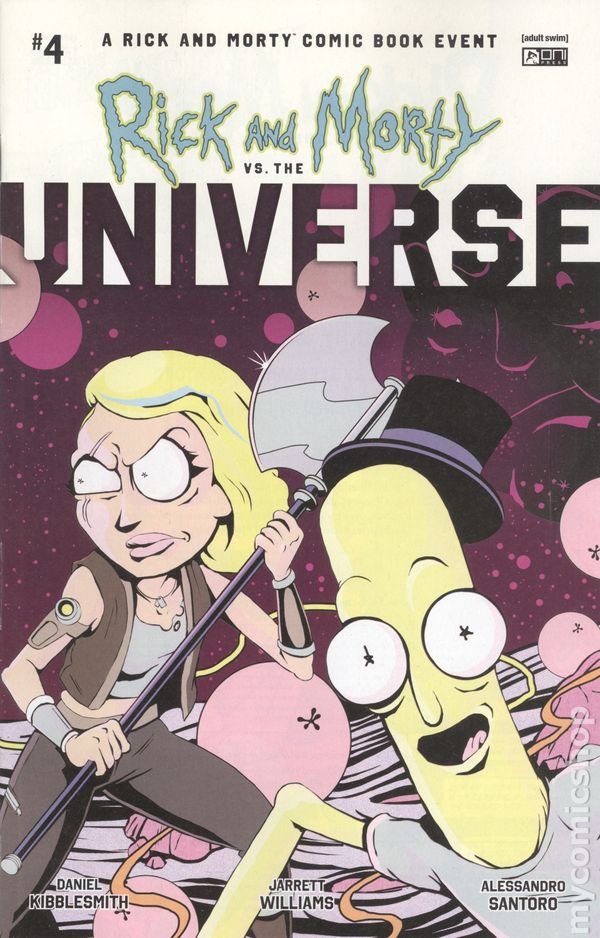 (W) Daniel Kibblesmith (A) Jarrett Williams, (CA) Troy Little DEATH, RETCON, REBOOT, REBIRTH . . . IS THIS FINALLY THE END OF RICK AND MORTY?!Theyve finally burned every bridge and alienated every possible ally. Theyve seen too much. Theyve DONE too much. This version of Rick has crossed too many lines. He cant be allowed to continue. At least, thats what the Parmesan Universe seems to think! And perhaps she is right. As Rick finds himself on the verge of annihilation . . . universes collide! Trillions of lives lost! But perhaps there is still hope—hope for Rick-demption! Is there time to restore order? Can Rick really undo all the horrors hes visited upon existence? Can we finally go back to pronouncing Parmesan correctly? The galaxy-sized summer event of 2025 is almost over . . . and creators Daniel Kibblesmith (Loki) and Jarrett Williams (Speed Force) will forever grapple with the aftermath! 32 pages, full color, rated mature. Cover price $4.99.