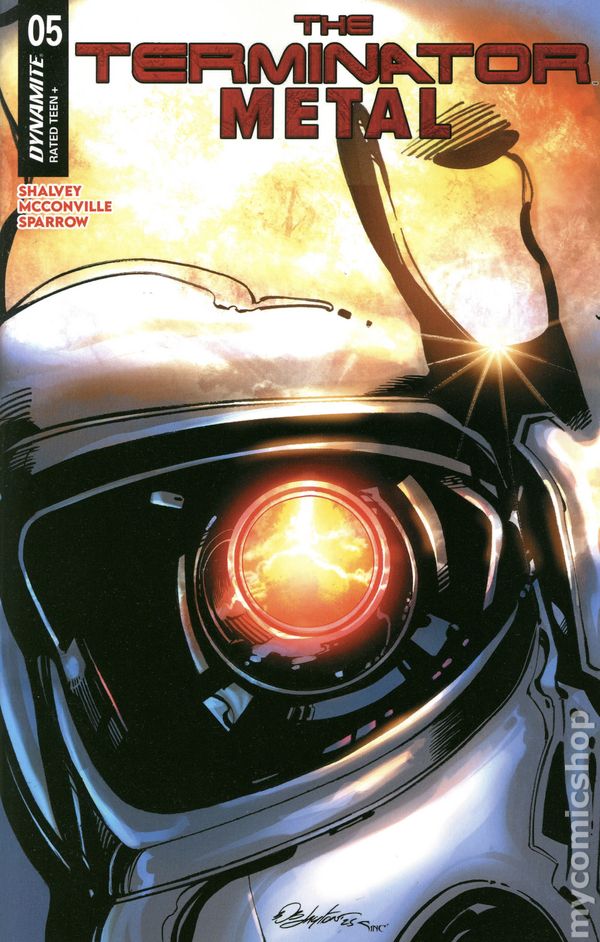 (W) Declan Shalvey, Rory McConville (A) Luke Sparrow (CA) Declan Shalvey A TALE OF ICE — AND FIRE! Deep in the frozen wilderness of the Arctic Circle, a lonely satellite relay station is manned by a single research scientist. For years, the facilitys profound isolation has guaranteed the integrity of its top-secret operations — but all of that is about to change. Materializing out of the blinding snow, an intruder walks through every security measure the base can throw at it. As she watches the unstoppable figure approach, the lone researcher is faced with a stark choice: risk the stations security in a last-ditch defense, or improvise a more permanent — and lethal — solution? Artist LUKE SPARROW reunites with authors DECLAN SHALVEY and RORY MCCONVILLE to finish their countdown to Judgement Day in The Terminator: Metal #5 — featuring concussive contributions from steely-eyed cover artists SHALVEY, BOB LAYTON, SEBASTIAN PIRIZ, and REESE HANNIGAN! 32 pages, full color, rated Teen+. Cover price $4.99.