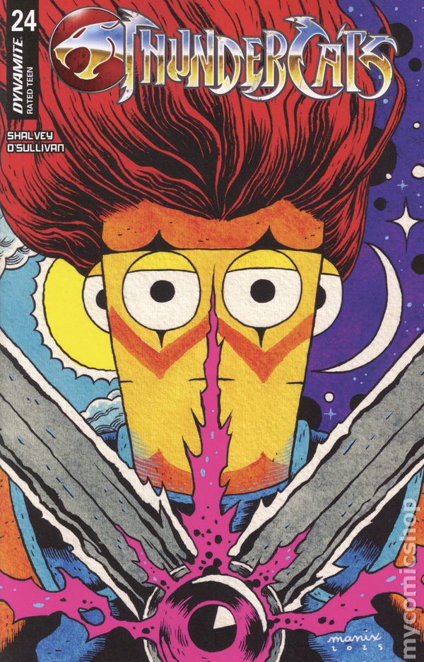 Limited 1 for 10 Retailer Incentive Variant Cover. (W) Declan Shalvey (A) David OSullivan (CA) Manix KNOWLEDGE IS POWER! In this issue: The moment has finally come! Lion-O unlocks the Book of Omens, and even with all that he has learned since the ThunderCats arrival on Third Earth, what he discovers in its pages shocks him to his very core! Diligent historians DECLAN SHALVEY and DAVID OSULLIVAN put it all on the record in ThunderCats #24 — featuring corroborating covers by SHALVEY, LUCIO PARRILLO, JAE LEE & JUNE CHUNG, EMILIO PILLIU, and MANIX! 32 pages, full color, rated T. Cover price $4.99.