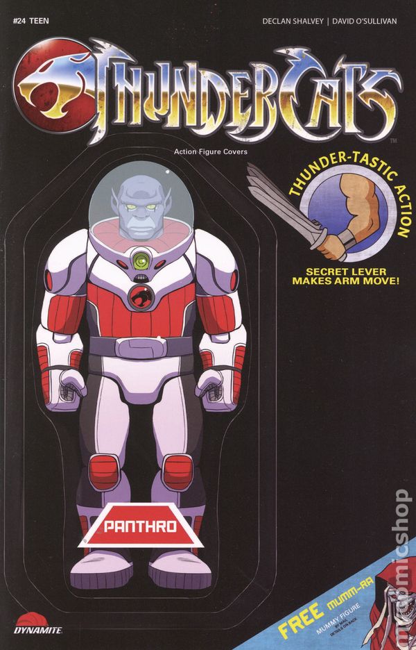 Limited 1 for 10 Retailer Incentive Variant Cover. (W) Declan Shalvey (A) David OSullivan (CA) Action Figure KNOWLEDGE IS POWER! In this issue: The moment has finally come! Lion-O unlocks the Book of Omens, and even with all that he has learned since the ThunderCats arrival on Third Earth, what he discovers in its pages shocks him to his very core! Diligent historians DECLAN SHALVEY and DAVID OSULLIVAN put it all on the record in ThunderCats #24 — featuring corroborating covers by SHALVEY, LUCIO PARRILLO, JAE LEE & JUNE CHUNG, EMILIO PILLIU, and MANIX! 32 pages, full color, rated T. Cover price $4.99.