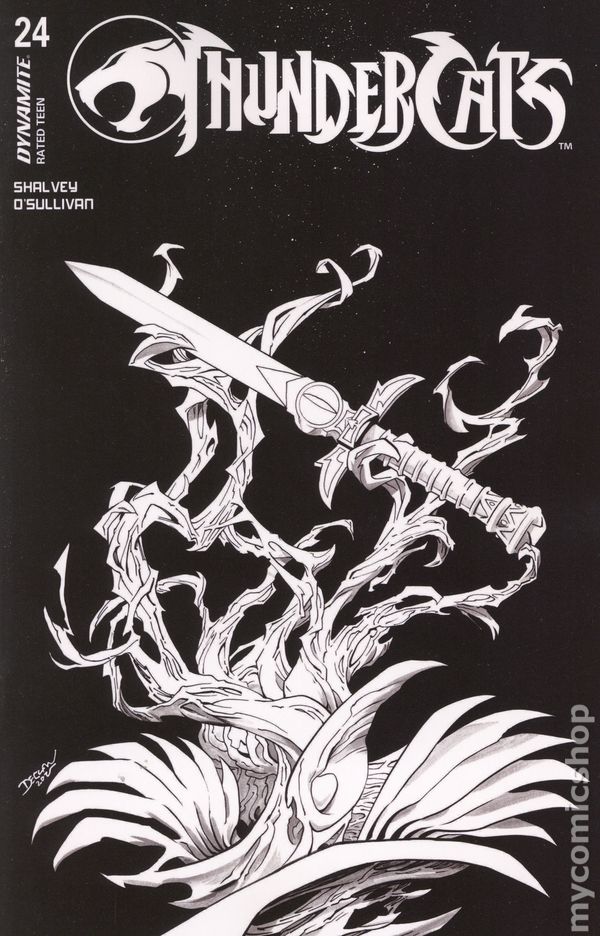 Limited 1 for 7 Retailer Incentive Variant Cover. (W) Declan Shalvey (A) David OSullivan (CA) Declan Shalvey KNOWLEDGE IS POWER! In this issue: The moment has finally come! Lion-O unlocks the Book of Omens, and even with all that he has learned since the ThunderCats arrival on Third Earth, what he discovers in its pages shocks him to his very core! Diligent historians DECLAN SHALVEY and DAVID OSULLIVAN put it all on the record in ThunderCats #24 — featuring corroborating covers by SHALVEY, LUCIO PARRILLO, JAE LEE & JUNE CHUNG, EMILIO PILLIU, and MANIX! 32 pages, full color, rated T. Cover price $4.99.