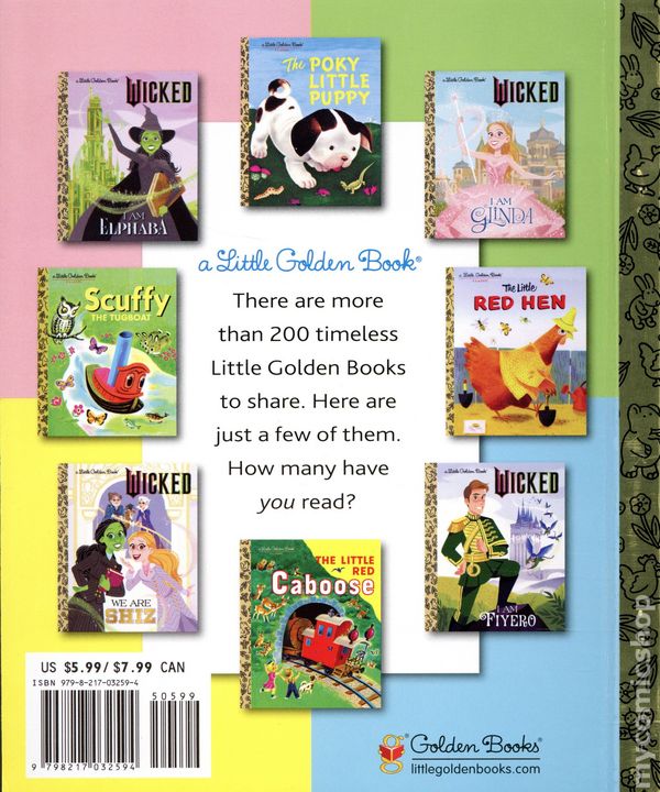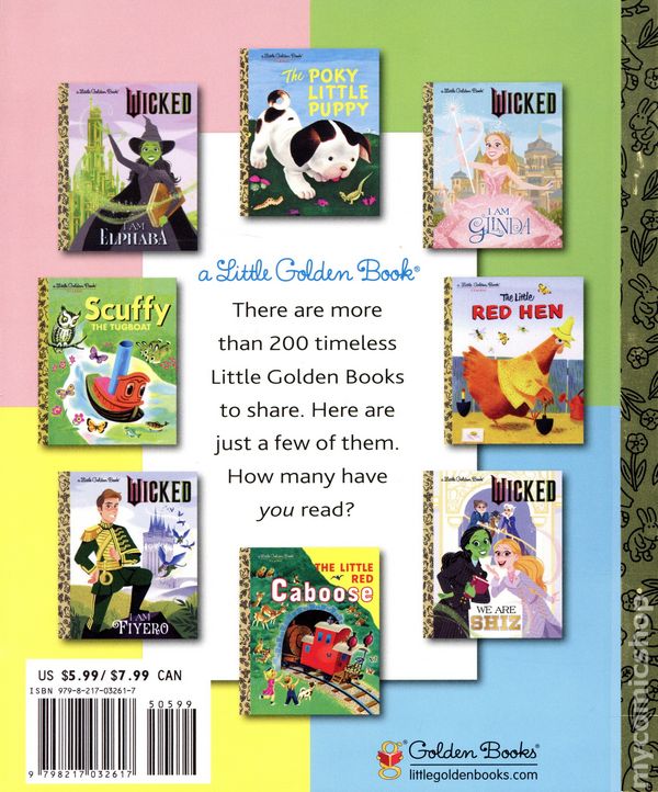 1st printing. Written by Mary Man-Kong. Art and cover by Hollie Mengert. Elphaba, Glinda, Fiyero, Nessarose, and Boq star in this Little Golden Book based on Universal Pictures blockbuster film Wicked! Welcome to Shiz University, where knowledge meets magic! Meet Shiz students Elphaba, Glinda, Fiyero, Nessarose, and Boq, as they star in this Little Golden Book based on Universal Pictures Wicked! Little Golden Books enjoy nearly 100% consumer recognition. They feature beloved classics, hot licenses, and new original stories . . . the classics of tomorrow. Hardcover, 6 1/2-in.x 8-in., 24 pages, full color. All Ages Cover price $5.99.
