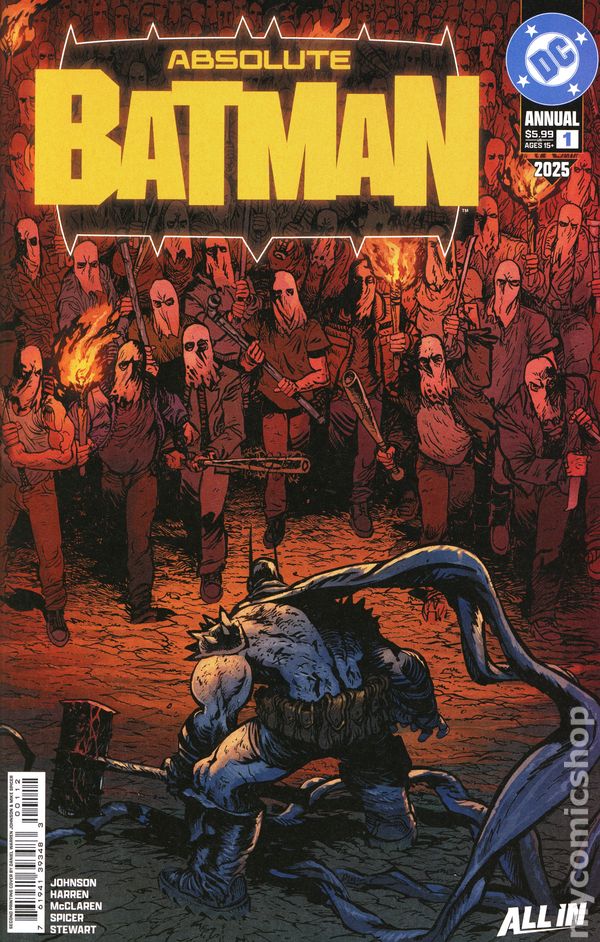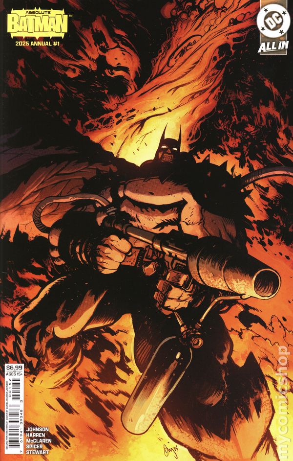 2nd Printing, Cover D. Foil Cover. Written by Daniel Warren Johnson, James Harren, Meredith McClaren. Art by Daniel Warren Johnson, James Harren, Meredith McClaren. Cover by Daniel Warren Johnson. EARLY ADVENTURES OF THE ABSOLUTE BATMAN! Some of the biggest names in comics take a turn in the Absolute Universe! Daniel Warren Johnson and James Harren tell tales from Absolute Batmans early days! How did Bruce acquire his batmobile? And what was it like for Black Masks party animals when Batman first hit the scene? 56 pages, full color, rated 15+. Cover price $8.99.