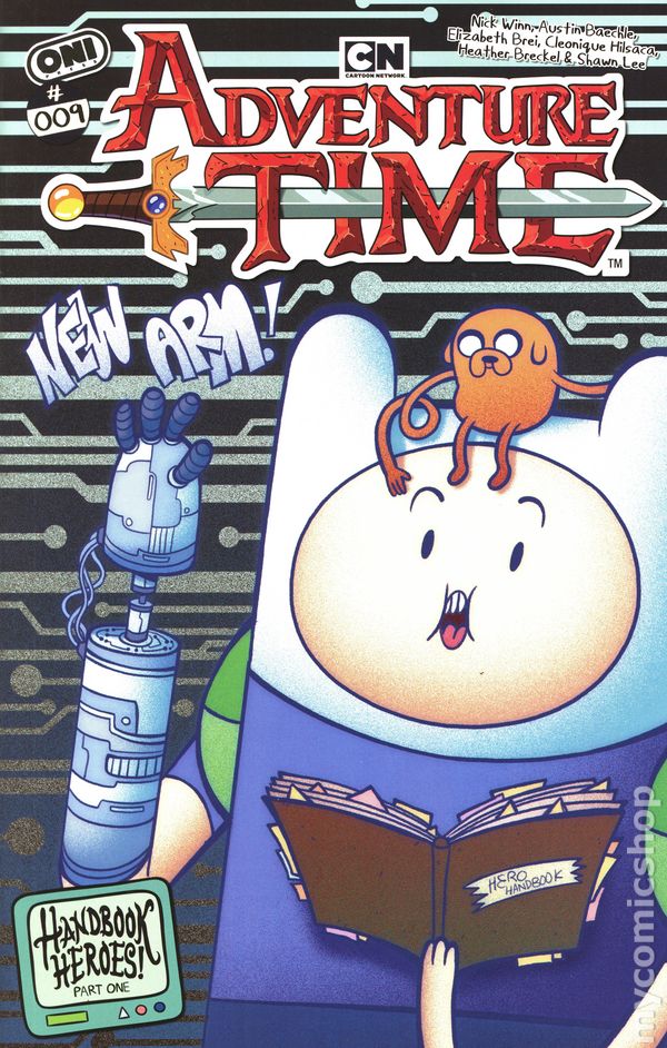 (W) Nick Winn, Elizabeth Brei (A) Austin Baechle, Cleonique Hilsaca (CA) Austin Baechle ALL-NEW ARC! ALL-NEW JUMPING-ON POINT! HANDBOOK HEROES! STARTS HERE! With the Enchiridion—the famed guide for adventurers—seemingly gone for good, Finn and Jake set out to make their own handbook on how to be a hero! (See what we did there?) Armed (literally) with new tech from Computer Princess, the best of buds aim to record all the sword swings, fighting styles, sick dance moves, and weird junk they can find. But what happens when they run into perhaps their most terrifying adversary yet—Robot Finn, who’s going around being all unheroic and totally besmirching the real Finn’s good name! Can our heroes—with the help of some familiar faces—get to the bottom of this mechanical mystery?! From cartoonist and animator Nick Winn (Bloody Mary) and the series' next stellar artist, Austin Baechle (Sesame Street), Handbook Heroes! is the perfect jumping-on point for new readers and old fans! Cover price $4.99.