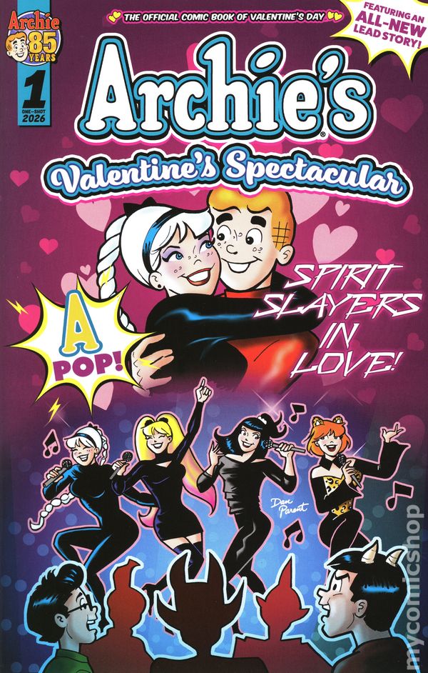 (W) Holly G! (A) Steven Butler, Lily Butler, Glenn Whitmore, Jack Morelli (CA) Dan Parent The OFFICIAL COMIC BOOK OF VALENTINE’S DAY returns with a BRAND NEW STORY! A-POP is a vibrant world fueled by music and love—and when Sabrina, Betty, Veronica, and Josie form a band (managed by Archie!) to spread joy and compassion, they catch the eye of a dark spirit that’s threatened by their positivity. Can they rise above his dark influence? Find out in this fun KPOP DEMON HUNTERS-style story, along with even more romance-filled tales than ever! Cover price $4.99.