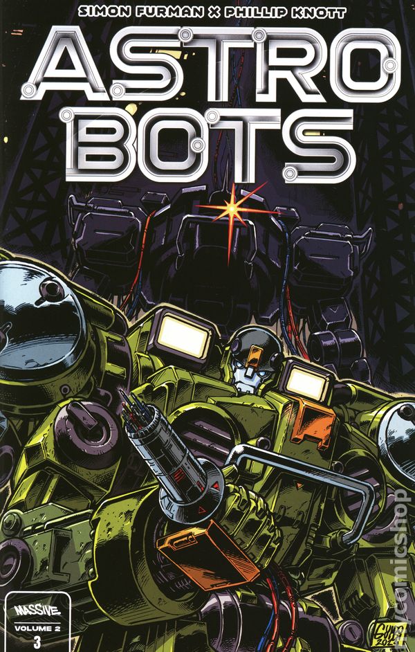 (W) Simon Furman (A) Phillip Knott (CA) Guido Guidi Simon Furman, writer of the original Transformers comic series, creator of Marvel's Death's Head, and writer of Astrobots Volume 1 has teamed up with Philip Knott, known for his work on IDW's Transformers: Last Bot Standing to continue the Mecha-Masterwork based on the toyline designed by Aaron Thomas.Pathfinders, Pioneers...breaking new ground in the furthest reaches of the galaxy...they are - ASTROBOTS. Cover price $5.00.