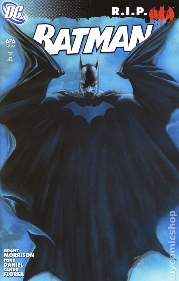 (W) Grant Morrison (A) Tony S. Daniel (CA) Alex Ross BATMAN R.I.P. BEGINS HERE! The Danse Macabre is ready to begin! As Dr. Hurt and the criminal consortium known only as the Black Glove begin their malevolent machinations, Bruce Wayne and Jezebel Jet receive a most mysterious summons. It's the beginning of the epic saga, Batman R.I.P.! Cover price $3.99.