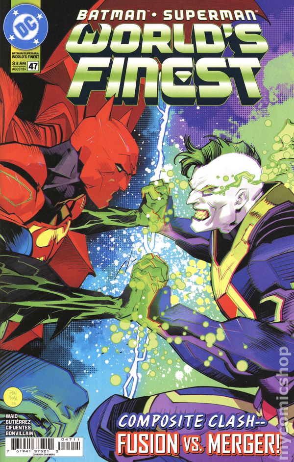 (W) Mark Waid (A) Adrian Gutierrez (CA) Dan Mora FUSION VS. MERGER! The combined might of Batman and Superman faces off against the combined might of The Joker and Lex Luthor in the knock-down, drag-out brawl of a conclusion to The Merger! Someone is about to get their not-too-distant past kicked! Cover price $3.99.
