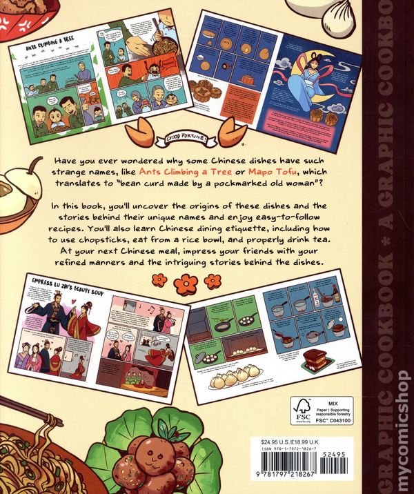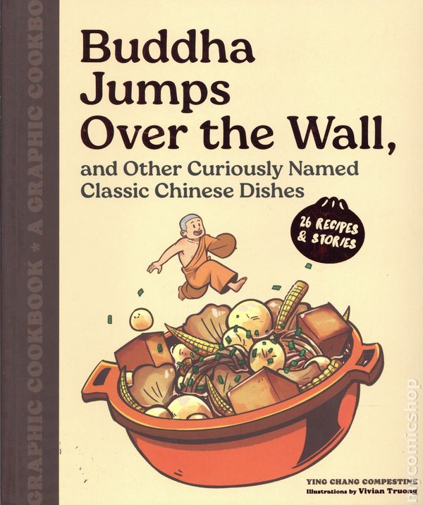 1st printing. Explore the unique nomenclature of traditional Chinese dishes through folklore, personal storytelling, and 26 easy-to-cook recipes in this entertaining graphic novel cookbook, perfect for lovers of comics and food. Storytelling is one of the most universal and collaborative components in every culture. In Chinese culture, dishes are often connected to a classic legend, a famous person, or a historical event, underlining the importance of food. In this delightful graphic novel-style recipe book, Chinese American cookbook author Ying Chang Compestine explores the folkloric stories behind beloved Chinese dishes and gives easy-to-follow recipes for each, such as: Mapo Tofu, a savory dish named for the 'old lady with a pockmarked face' who invented it. Goubuli Baozi (translation: "ignored by doggy stuffed buns'), classic buns with minced pork and vegetables made popular by an unusually taciturn village boy. Tear-inducing Heartbreak Jelly Noodles that combine chili oil, peppercorns, and other fiery ingredients and are believed to cure the sadness of a broken heart. Steamed Milk Custard, one of the most beloved desserts in China, originated during the Qing Dynasty by a hungry young cattle farmer as a way to preserve milk. These are dishes Ying grew up with, cooked with her grandmother, and prepares for her own family today. Stories and recipes are illustrated and presented in panel layout, with art by award-winning children's book illustrator Vivian Truong. UNIQUE VISUAL STORYTELLING: There are many classic and new Chinese cookbooks, but this visually rich graphic novel format combines Chinese food, history, and culture in humorous and engaging language and images, creating an irresistible new approach. A COOKBOOK FOR EVERYONE: The 26 illustrated recipes. Including appetizers, main courses, and desserts Ñare simple and accessible, utilizing ingredients anyone can buy at their local grocery store. MEANINGFUL GIFT: With a sentimental and cultural focus, these recipes are about more than creating meals. Buddha Jumps Over the Wall is the perfect gift for anyone interested in Chinese cuisine and culture, readers with a passion for storytelling, or home cooks looking for delicious dishes with fascinating origins to return to again and again. Perfect for: Readers interested in Chinese culture, history, and folklore Lovers of comics and/or graphic novels People who enjoy humor and storytelling Gift-giving to foodies or home cooks Fans of illustrated cookbooks and food magazines Softcover, 7 1/2-in. x 9-in., 176 pages, full color. Cover price $24.95.