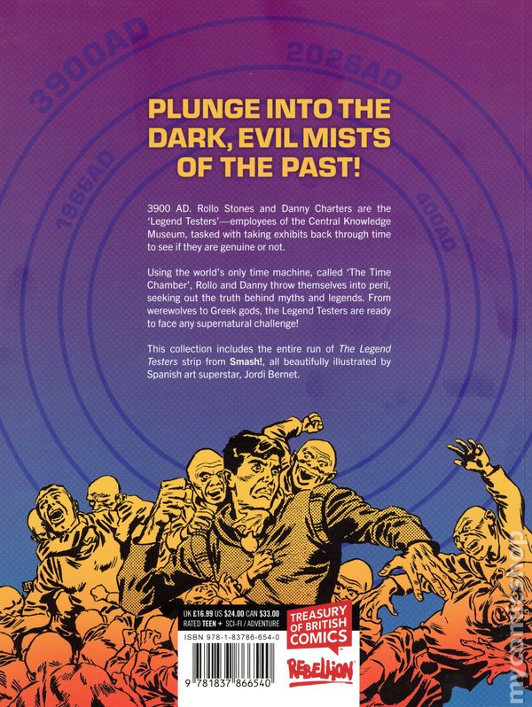 1st printing. Written by Graham Baker. Art and cover by Jordi Bernet. Twelve Monkeys meets Clash of the Titans in this epic time travel adventure story from Spanish comics superstar, Jordi Bernet! 3900 AD. Rollo Stones and Danny Charters are the Legend Testers - employees of the Central Knowledge Museum, tasked with taking exhibits back through time to see if they are genuine or not. Using the worlds only time machine called, The Time Chamber, Rollo and Danny throw themselves into peril, seeking out the truth behind myths and legends. From werewolves to Greek Gods, the Legend Testers are ready to face any supernatural challenge! This collection includes the entire run of the *Legend Testers *strip from Smash!, all beautifully illustrated by Spanish art superstar, Jordi Bernet. Softcover, 160 pages, B&W. Teen+ Cover price $24.00.