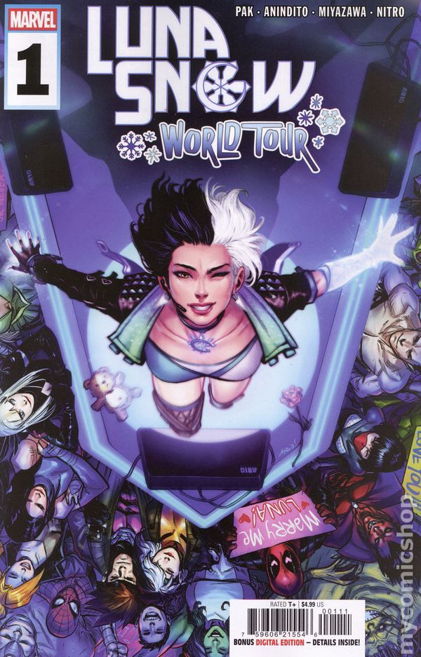 (W) Greg Pak (A) Ario Anindito; Takeshi Miyazawa (CA) Ario Anindito LUNA SNOW ON AN ALL-NEW ADVENTURE! As the world recovers from Doctor Doom's takeover, K-pop star and ice-wielding super hero LUNA SNOW hits her lowest low yet. So she takes her music into her own hands - and hits the road! But when a NEW K-POP STAR appears on the scene with music that's so catchy it's criminal, Luna has to shift into hero mode to defend the very fans who can't stand her. Can she win their hearts and save the day? And which beloved Marvel heroes will join her along the way? 32 pages, rated T+, Full color Cover price $4.99.