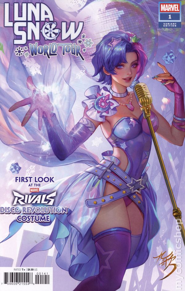 (W) Greg Pak (A) Ario Anindito; Takeshi Miyazawa (CA) Lesley "Leirix" Li LUNA SNOW ON AN ALL-NEW ADVENTURE! As the world recovers from Doctor Doom's takeover, K-pop star and ice-wielding super hero LUNA SNOW hits her lowest low yet. So she takes her music into her own hands - and hits the road! But when a NEW K-POP STAR appears on the scene with music that's so catchy it's criminal, Luna has to shift into hero mode to defend the very fans who can't stand her. Can she win their hearts and save the day? And which beloved Marvel heroes will join her along the way? 32 pages, rated T+, Full color Cover price $4.99.