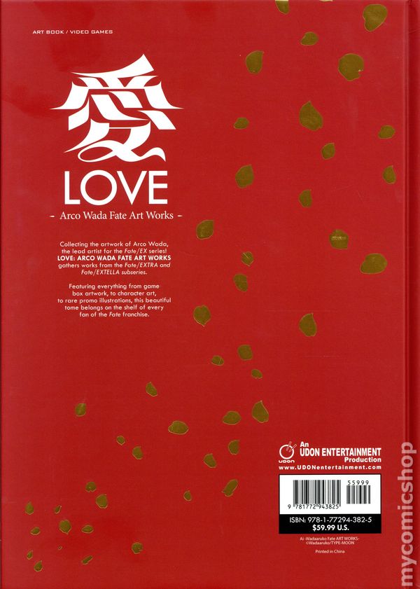1st printing. Text by Type-Moon. Art and cover by Arco Wada. Collecting the artwork of Arco Wada, the lead artist for the Fate/EX series! LOVE: ARCO WADA FATE ART WORKS gathers works from the Fate/EXTRA and Fate/EXTELLA subseries. Featuring everything from game box artwork, to character art, to rare promo illustrations, this beautiful tome belongs on the shelf of every fan of the Fate franchise. Hardcover, 8 1/2-in. x 11-in., 308 pages, full color. Teen+ Cover price $59.99.