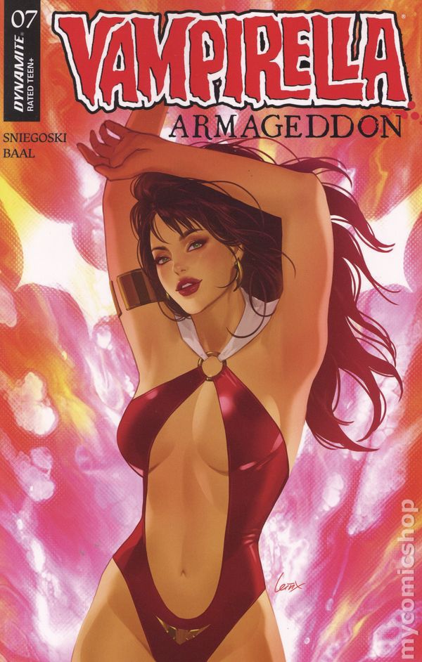 (W) Tom Sniegoski (A) Edu Menna (CA) Leirix Li THESE GOOD INTENTIONS SURE ARE SLIPPERY! As Hemorrhage hunts for Vampirella through the sulphurous wastes of the Hell, a rescue party from Sepulcher City arrives to return the Daughter of Drakulon to the mortal world — but who is going to rescue the rescuers once it becomes clear how far out of their depth they have fallen?Find out as renowned Vampi wranglers TOM SNIEGOSKI and EDU MENNA reconnoiter another ring of the Inferno in Vampirella: Armageddon #7 — enhanced by coordinated covers from FRANCESCO MATTINA, LESLEY LEIRIX LI, JOSEPH MICHAEL LINSNER, and cosplay by LAUREN DELOREAN! 32 pages, full color, rated T+. Cover price $4.99.