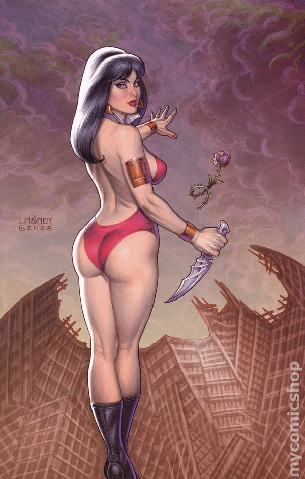 Limited 1 for 10 Retailer Incentive Variant Cover.(W) Tom Sniegoski (A) Edu Menna (CA) Joseph Michael Linsner THESE GOOD INTENTIONS SURE ARE SLIPPERY! As Hemorrhage hunts for Vampirella through the sulphurous wastes of the Hell, a rescue party from Sepulcher City arrives to return the Daughter of Drakulon to the mortal world — but who is going to rescue the rescuers once it becomes clear how far out of their depth they have fallen?Find out as renowned Vampi wranglers TOM SNIEGOSKI and EDU MENNA reconnoiter another ring of the Inferno in Vampirella: Armageddon #7 — enhanced by coordinated covers from FRANCESCO MATTINA, LESLEY LEIRIX LI, JOSEPH MICHAEL LINSNER, and cosplay by LAUREN DELOREAN! 32 pages, full color, rated teen+. Cover price $4.99.