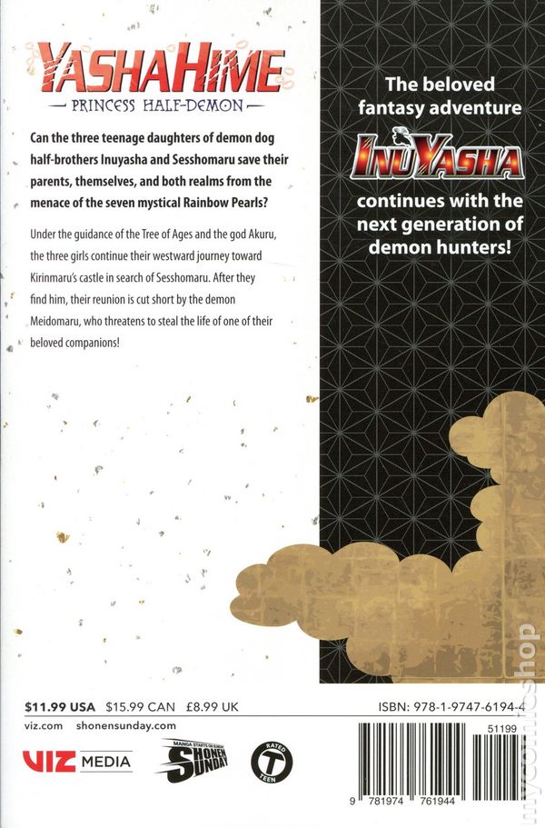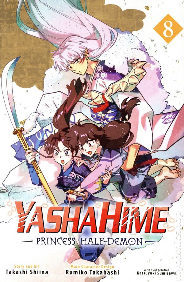 Volume 8 - 1st printing. Story and Art by Takashi Shiina. Main Character Design by Rumiko Takahashi. Script Cooperation by Katsuyuki Sumisawa. Translated by Junko Goda. The beloved fantasy adventure Inuyasha continues with the next generation of demon hunters! Can the three teenage daughters of demon dog half-brothers Inuyasha and Sesshomaru save their parents, themselves, and both realms from the menace of the seven mystical Rainbow Pearls? Under the guidance of the Tree of Ages and the god Akuru, the three girls continue their westward journey toward Kirinmarus castle in search of Sesshomaru. After they find him, their reunion is cut short by the demon Meidomaru, who threatens to steal the life of one of their beloved companions! Softcover, 5-in. x 7-in., 192 pages, B&W. Cover price $11.99.