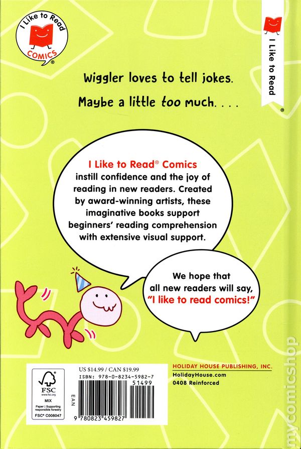 1st printing. Story and art by Kaeti Vandorn. A jokester worm finds out that friendship means more than just play in this candy-colored young graphic novel by an Eisner-nominated comics artist. Wiggler loves a good laugh! Thanks to a joke book that she took out from the library, her day is all fun and games. Everyone in town enjoys her new jokes . . . until she accidentally hits a nerve and makes her friend Roro angry. But why? Did she forget part of the joke? Did she tell the punchline wrong? What could possibly be the problem? After a nudge from a four-legged friend, Wiggler realizes that jokes aren't always helpful, especially when someone is sad or stressed. Wiggler tracks down Roro to make things right—and Roro comes up with an excellent joke of his own. I Like to Read Comics are perfect for kids who are challenged by or unengaged in reading, kids who love art, and the growing number of young comics fans. Filled with eye-catching art, humor, and terrific stories, these comics provide unique reading experiences for growing minds. Like their award-winning I Like to Read counterparts, these books are created by celebrated artists and support reading comprehension to transform children into lifelong readers. Softcover, 6-in. x 9-in., 40 pages, full color. All Ages Cover price $8.99.