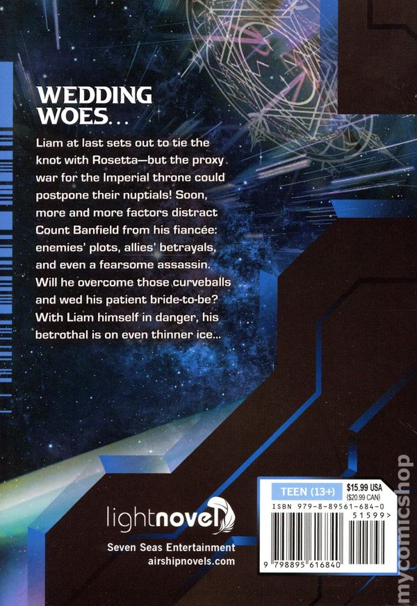 Volume 10 - 1st printing. Written by Yomu Mishima. Art and cover by Nadare Takamine. Translated by Amy Osteraas. Adapted by Jeffrey Thomas. WEDDING WOES… Liam at last sets out to tie the knot with Rosetta—but the proxy war for the imperial throne could postpone their nuptials! Soon, more and more factors distract Count Banfield from his fiancée: enemies plots, allies betrayals, and even a fearsome assassin. Will he overcome those curveballs and wed his patient bride-to-be? With Liam himself in danger, his betrothal is on even thinner ice… Softcover, 5-in.x 7-in., 368 pages, Text (with B&W Chapter Illustrations). Teen (13+) Cover price $15.99.