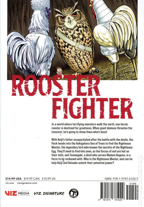 Volume 9 - 1st printing. Story and art by Syu Sakuratani. Translated by Jonah Mayahara-Miller. Giant demonic monsters wreak havoc and level Japanese cities! While the citizens flee in terror, its up to one brave rooster to stand his ground! In a world where terrifying monsters walk the earth, one heroic rooster is destined for greatness. When giant demons threaten the innocent, hes going to show them whos boss! With Keijis father incapacitated after the battle with the devils, the flock heads into the Aokigahara Sea of Trees to find the Righteous Master, the legendary bird who knows the secrets of the Righteous Egg. Theyll need to find him soon, as the forces of evil are hot on their tails, and Tsumegaki, a devil who serves Madam Kugone, is a force to be reckoned with. Who is the Righteous Master, and can he help Keiji and Keisuke unlock their potential power? Softcover, 5-in.x 7-in., 200 pages, B&W. For older teen audiences Cover price $14.99.