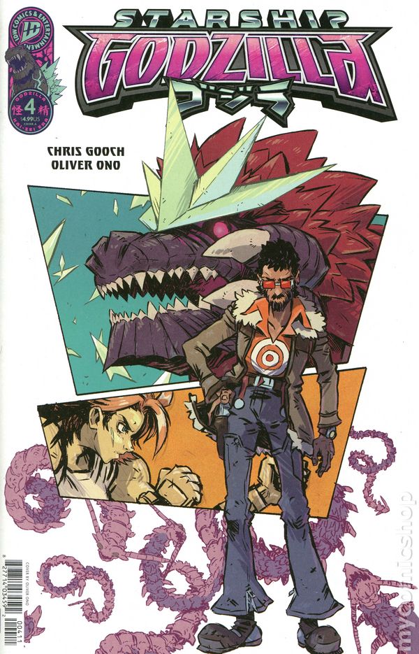 (W) Chris Gooch (A) Oliver Ono (CA) Chris Gooch Deep in the cosmos, a crew of misfits soar through the stars and stir up all manner of intergalactic trouble inside the Starship Godzilla.In this issue…SpaceGodzilla! As the Xiliens zero in on the greatest kaiju–—and ultimate weapon in the war—our crew find themselves forced to pick a side in this galactic battle. 32 pages, full color, not rated. Cover price $4.99.